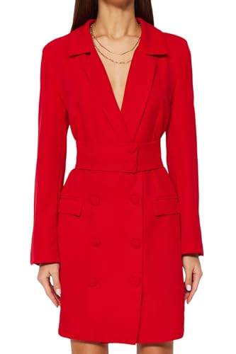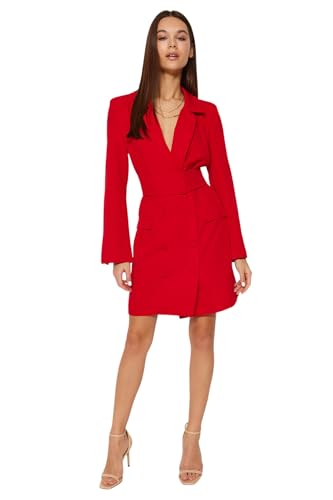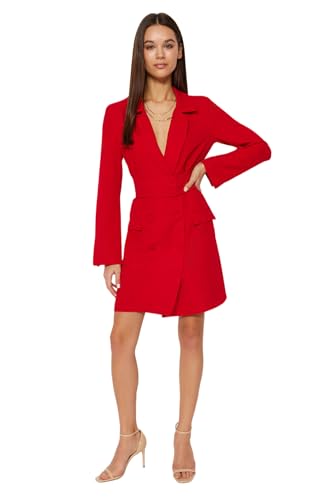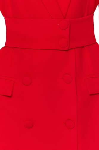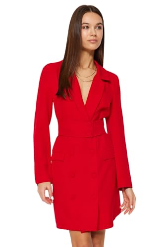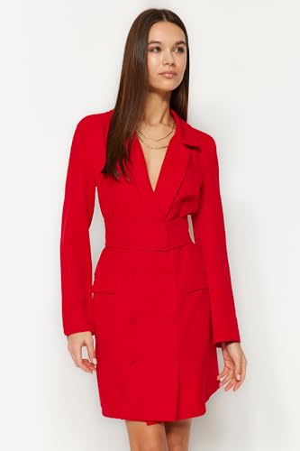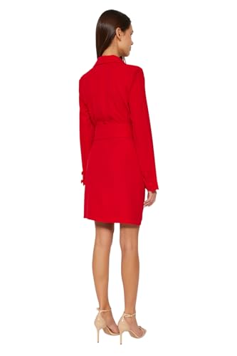 Trendyol - ترنديول فستان قصير منسوج بحزام وازرار للنساء، لون أحمر، TWOAW24EL00497