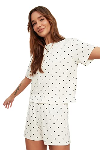 Trendyol - ترنديول طقم بيجامة محبوك مكون من تي شيرت وشورت قطن 100% للنساء THMSS21PT1485 (عبوة من قطعتين)