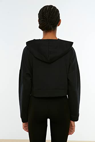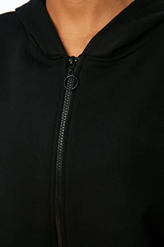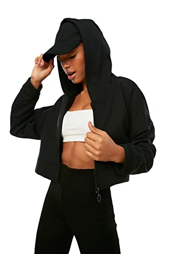 Trendyol - سويت شيرت TWOAW20SW0660 قصير أساسي منسوج بغطاء للرأس وسوستة مبطن من الداخل بالصوف السميك للنساء من ترينديول، قطعة واحدة، أسود