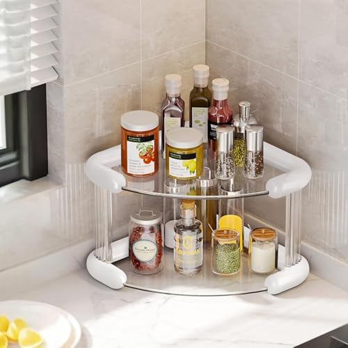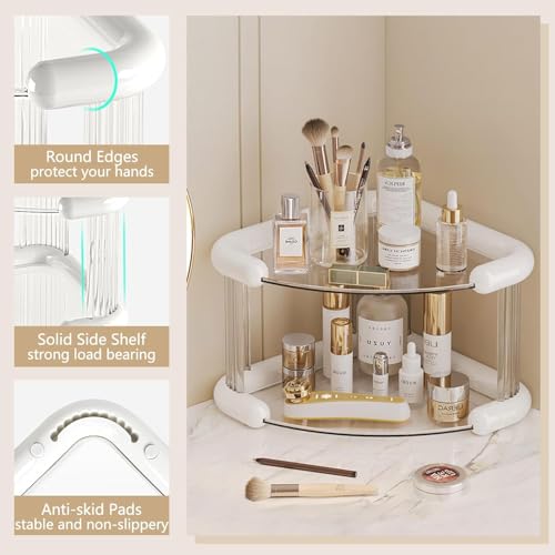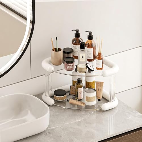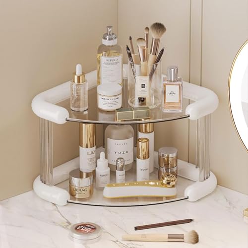 Generic - منظم ركن أكريليك مثلثي بقاعدة مزدوجة لترتيب العطور والميك أب والإكسسوارات باللون الأوف وايت مع أرفف زجاجية قوية لتوفير مساحة أنيقة في الحمام أو التسريحة