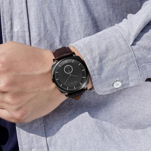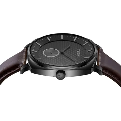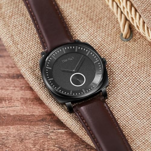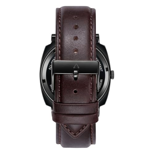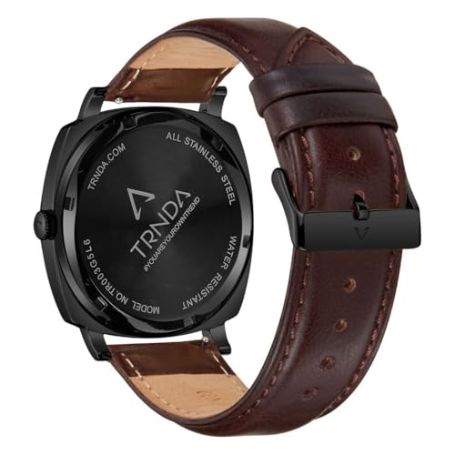TRNDA - ساعة يد للرجال مربعة الشكل من الفولاذ المقاوم للصدأ من تريندا، لون أسود، لأناقة دائمة، سوار جلد بلون بني