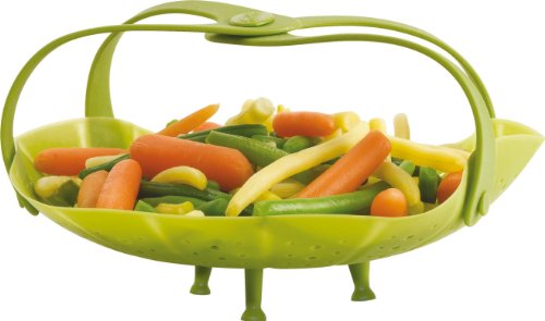 Trudeau - قِدر بخار للخضروات من السيليكون مع مقبض مقاس 9 1/4 انش من ترودو - لون اخضر