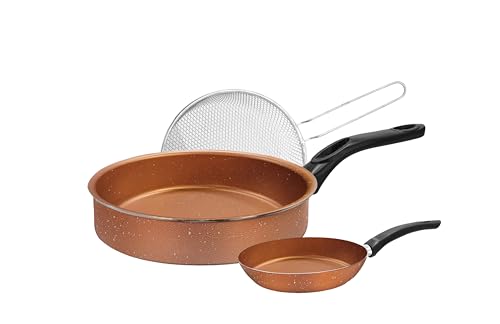 Trueval - طاسة قلي بعمق 24 سم مع طاسة قلي 16 سم مجانًا من تروفال، بلون نحاسي مع بقع بيضاء، مقاس 26 سم