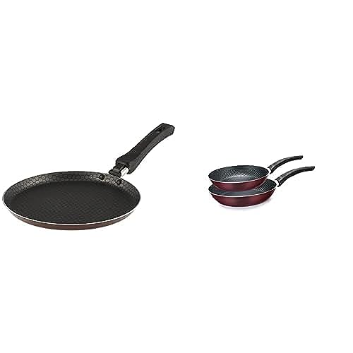 Trueval - طاسة قلي تفلون رفيعة من تروفال لون بورجندي مقاس 21 tofp21+ طقم قطعتين 16-22 احمر غامق