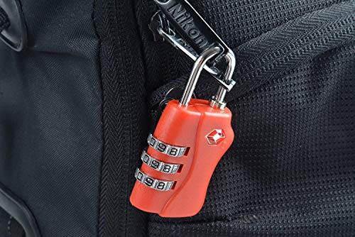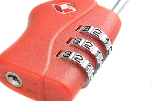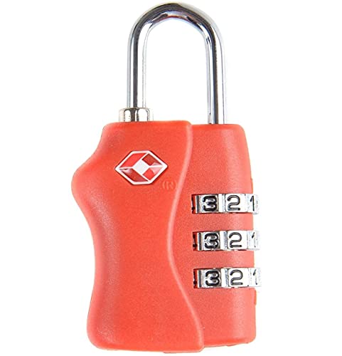 TSA - قفل الأمتعة المعتمد من تس اس ايه مع كلمة مرور مكونة من 3 أرقام لحقيبة الظهر حقيبة الجيم وخزانة المدرسة وحقيبة السف قفل بدون مفتاح - احمر