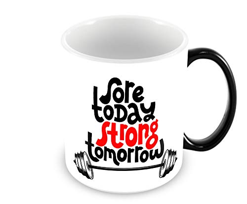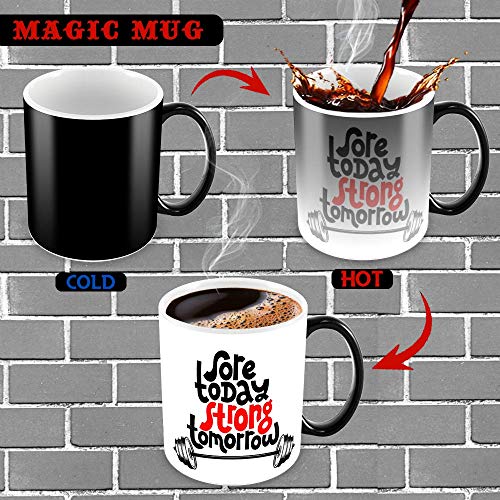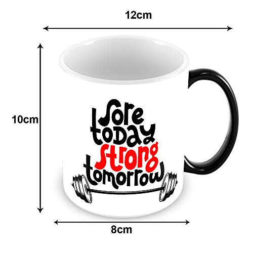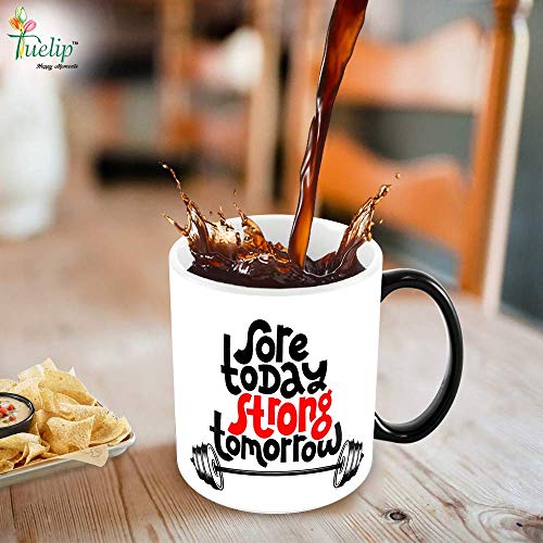 Tuelip - مج قهوة وشاي سحري متغير اللون بطبعة عبارات ملهمة "Sore Today Strong Tomorrow" من توليب (350 مل، اسود)، سيراميك