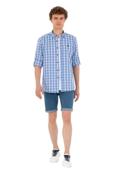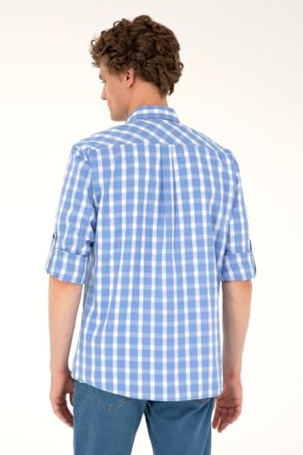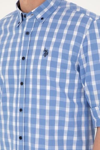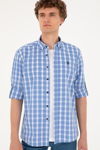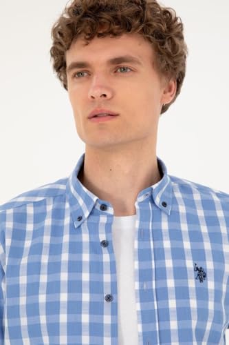 U.S. Polo Assn. - قميص بقصة عادية واكمام طويلة ولوجو مطرز وازرار امامية للرجال من يو اس بولو اسن، لون كحلي، مقاس XL