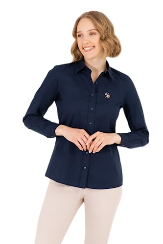 U.S. Polo Assn. - يو اس بولو اسن قميص قطن كلاسيكي باكمام كاملة للنساء وتصميم لوجو