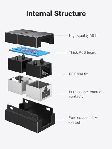 • موصل ار جيه 45 المعياري القياسي: تناسب واجهة 8P8C ار جيه 45 المعيارية جميع كابلات الشبكة مع موصل ار جيه 45. حتى مع الفصل والفصل المتعدد، لا يزال المقبس مضغوطًا ولا يبدو فضفاضًا.