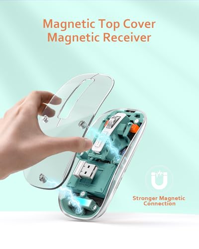 - تصميم ماوس شفاف بالكامل: يوفر تصميم الغطاء المغناطيسي القابل للإزالة الشفاف بالكامل للمستخدمين وظائف ماوس متقدمة لا تبدو عصرية فحسب، بل تتبع مستوى البطارية أيضًا.