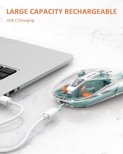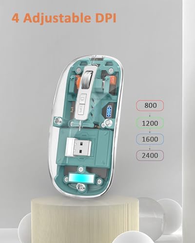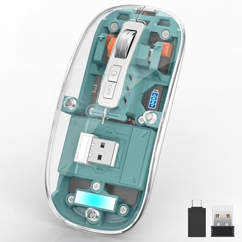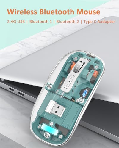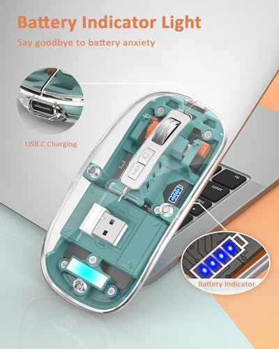 Uiosmuph - ماوس بلوتوث شفاف لاسلكي ثلاثي الأوضاع 5.1+ 5.1+ 2.4 جيجاهرتز C قابل لإعادة الشحن وصامت ورفيع للغاية 4 نقطة لكل بوصة لماك بوك وكمبيوتر محمول وباد iOS واندرويد أخضر M133