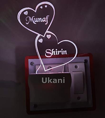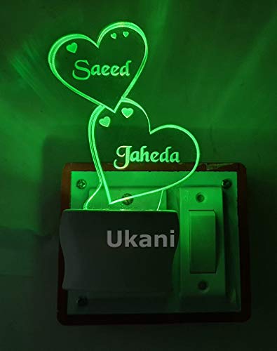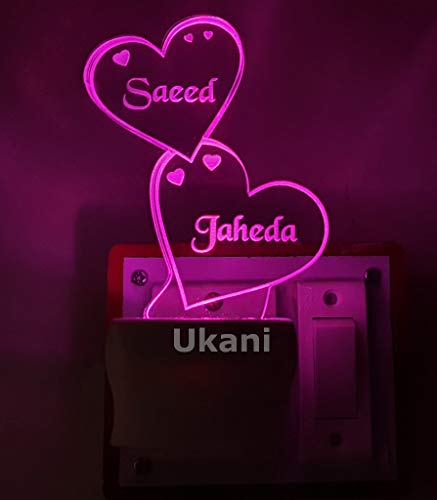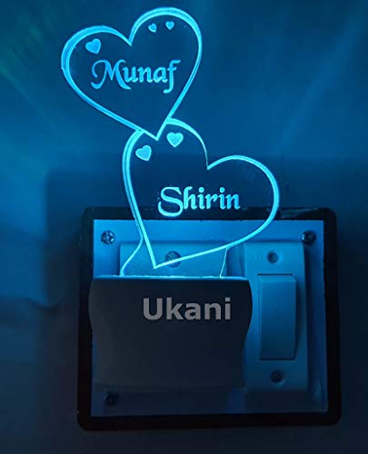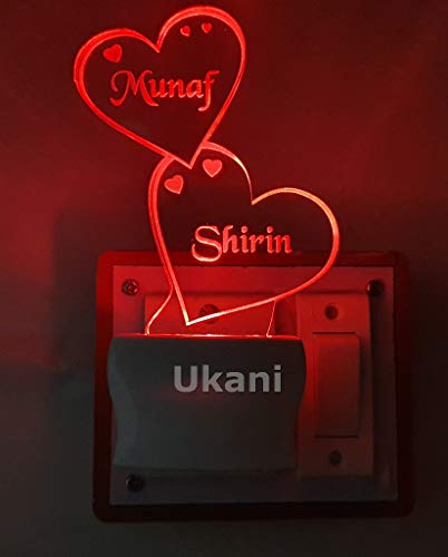 UKANI - مصباح ليلي LED من الاكريليك بتصميم مخصص لاسم وشعار 7 الوان متغيرة على شكل قلب مزدوج ثلاثي الابعاد اوكاني متعدد الالوان عبوة قطعة واحدة