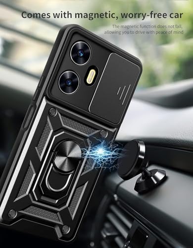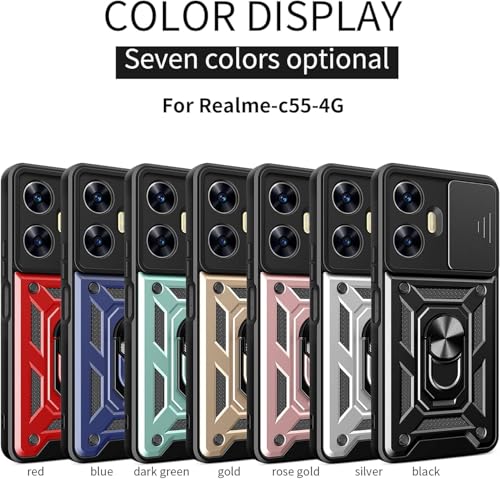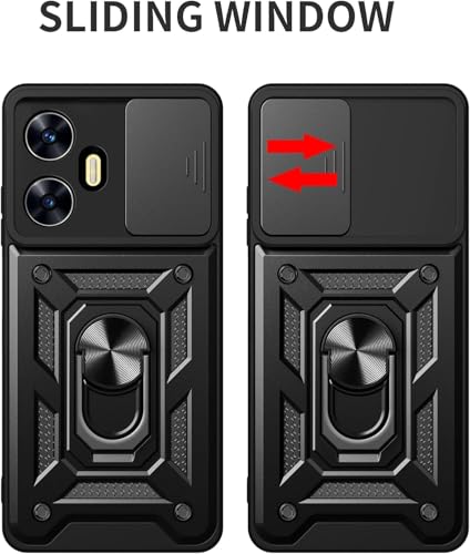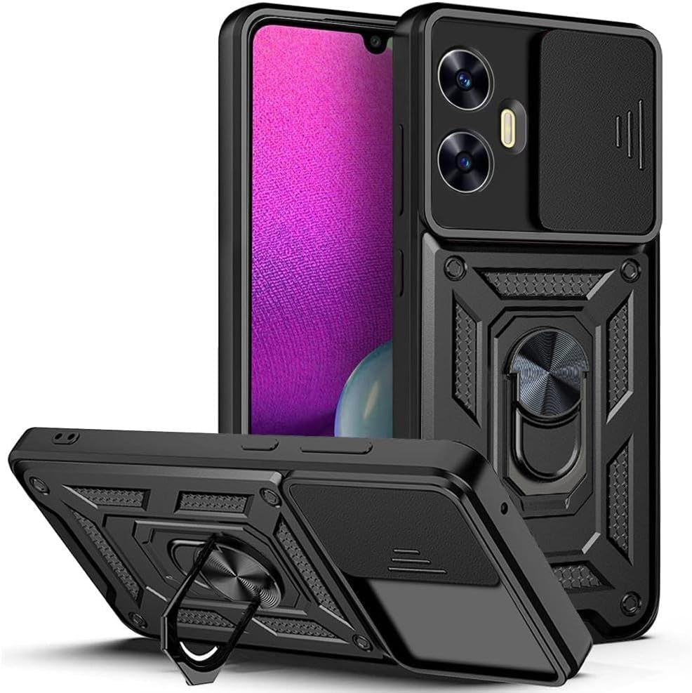 UNBLACK - جراب حماية خلفي مضاد للصدمات مع غطاء منزلق للكاميرا وحامل حلقي من انبلاك متوافق مع موبايل أوبو ريلمي C55 شبكة الجيل الرابع 4G