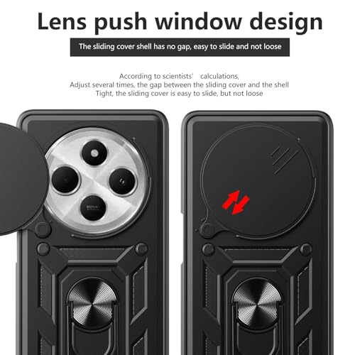 UNBLACK - جراب حماية بغطاء منزلق للكاميرا مقاوم للصدمات من البولي يوريثين المقاوم للحرارة والبولي كربونات من انبلاك، متوافق مع ريدمي 14C/ بوكو C75 شبكة الجيل الرابع 4G (أسود)