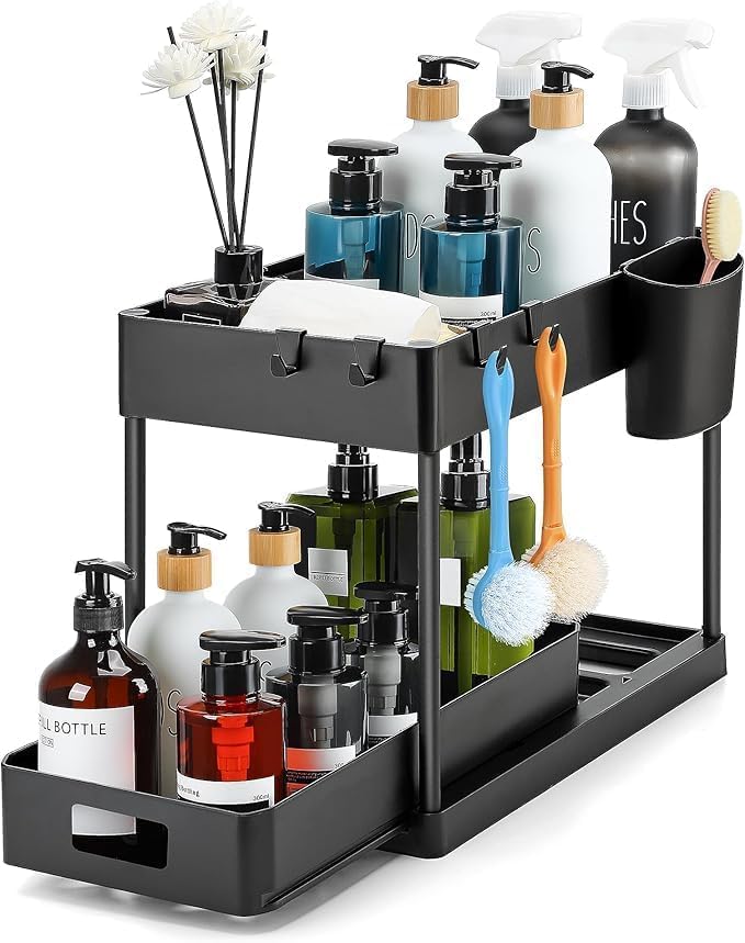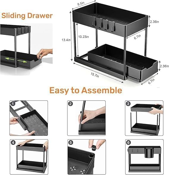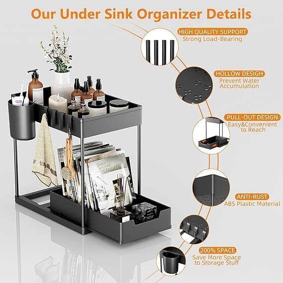 - منظم مريح يجعل من السهل استغلال المساحة تحت الحوض سواء في المطبخ أو الحمام بطريقة ذكية ومنسقة