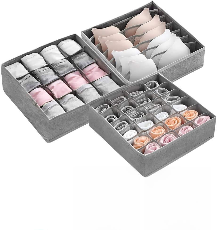 Generic - منظم أدراج الملابس الداخلية والملابس مع فاصل خزانة للجوارب والأوشحة وصناديق تخزين قابلة للطي وقابلة للغسل من القماش غير المنسوج باللون الرمادي للحفاظ على الترتيب