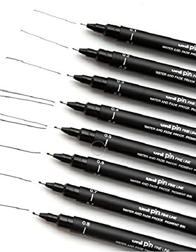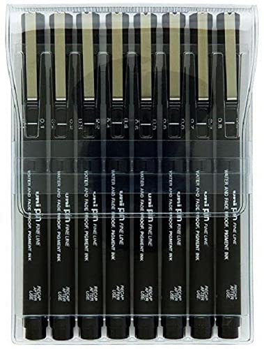 uni-ball - مجموعة أقلام الرسم المكونة من 8 قطع من يوني بين (0.1 ملم - 0.8 ملم)