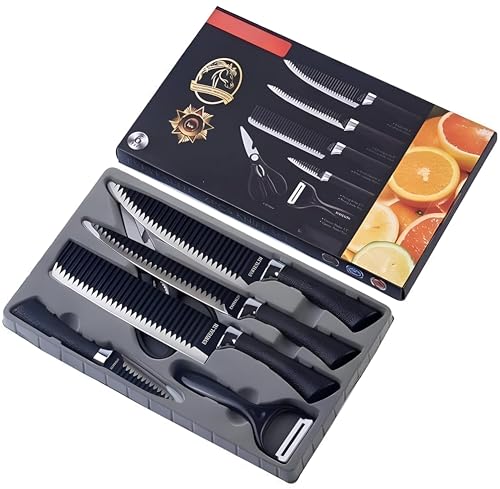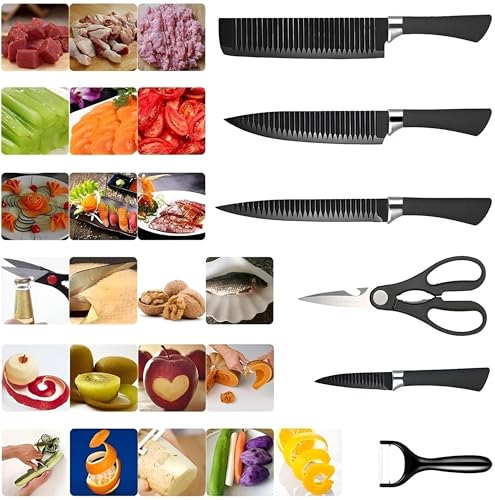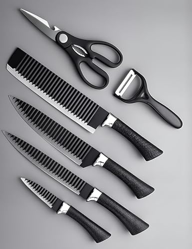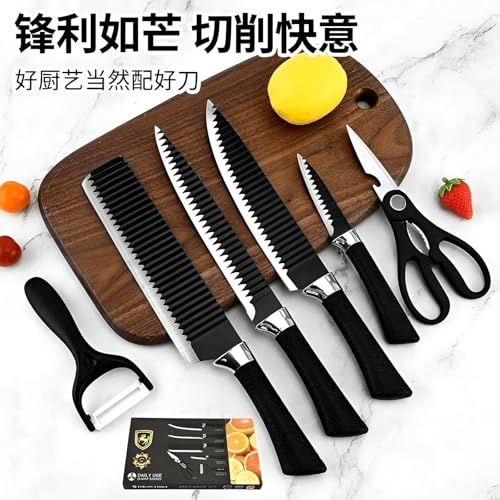 Generic - مجموعة سكاكين مميزة - مجموعة مكونة من 6 قطع سكاكين مطبخ خفيفة الوزن وغير لاصقة مع مقبض مريح، تشمل سكين شيف، سكين تقشير، سكين شرائح، مقشرة خضار، وزوج مقصات لتجهيز الطعام بسهولة.