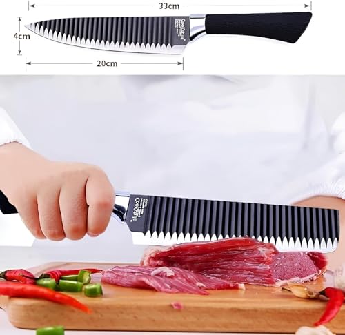 - شفرات متموجة وغير لاصقة تمنع الفواكه، الطماطم والبطاطس من الالتصاق، ما يضمن قطعًا ناعمة وتنظيفًا سهلًا.