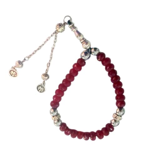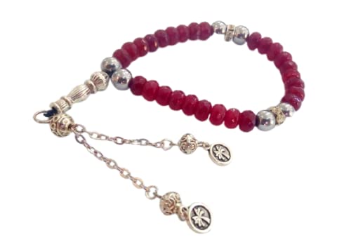 Generic - سبحة وسوار لليد بتصميم قابل للتمدد من الخرز الهندي الطبيعي الحقيقي، مكونة من 33 خرزة، احمر داكن