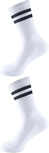 Generic - جوارب شبابي رياضية للجنسين ابيض اللون خطوط سوداء عدد 2 شرابات (white with balck stripes)