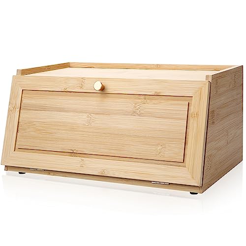 Infankey - صندوق خبز مطور من الخيزران، صندوق خبز مجاني لطاولة المطبخ، تخزين الخبز الكل في قطعة واحدة مع فتحات تهوية، حاوية تخزين الخبز بسعة كبيرة، يحافظ على الخبز والخبز الطازج