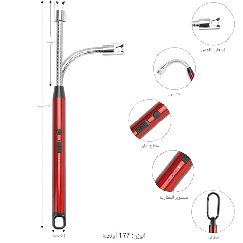 • تحتوي هذه الولاعة على رقبة مرنة، مما يسمح لها بالإشعال بسهولة في الزوايا الضيقة والمناطق التي يصعب الوصول إليها. يمنع تصميم مفتاح الأمان المزدوج الاشتعال العرضي، موفرًا مستوى إضافي من الحماية أثناء الاستخدام لضمان السلامة خلال المهام اليومية أو المناسبات الخاصة.