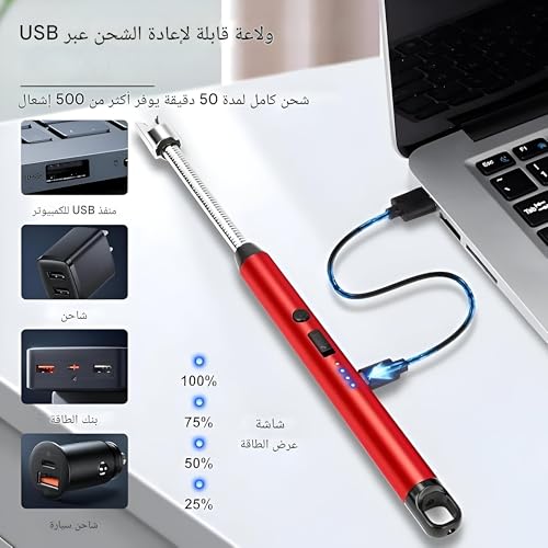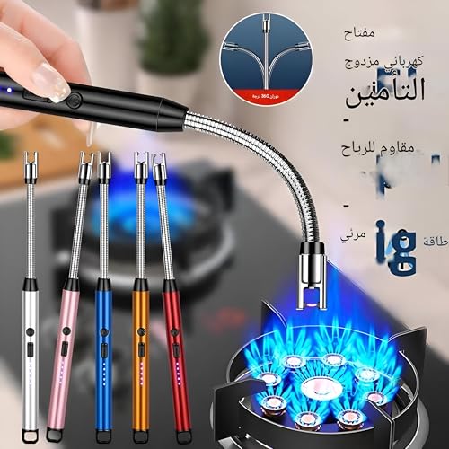 Generic - ولاعة USB - ولاعة شموع إلكترونية قابلة لإعادة الشحن برقبة طويلة ومقاومة للرياح ومتعددة الاستخدامات للطبخ في الأماكن الخارجية والتخييم والاستخدام المنزلي