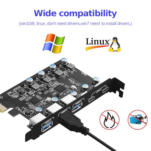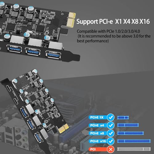 FARBOKO - بطاقة USB بمنفذ PCIe بـ5 منافذ لتوصيل الطاقة USB 3.0 5 جيجابايت في الثانية بطاقة توسيع PCI اكسبرس (3 منافذ نوع A و2 منفذ من النوع C) شحن سريع للكمبيوتر المكتبي