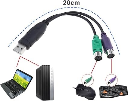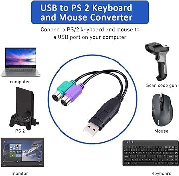 • 4. محول USB متقدم إلى PS/2 Y مزدوج متوافق مع كيبورد وماوس ويندوز/ماك/لينكس، ماسح الباركود.