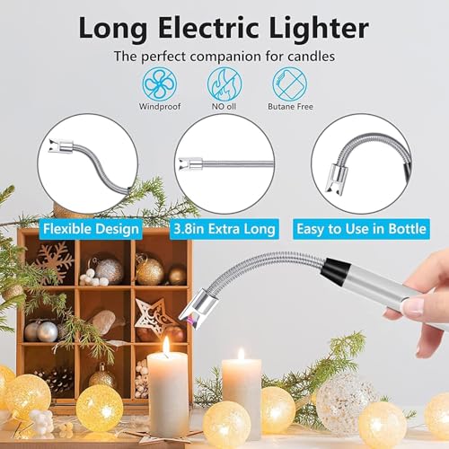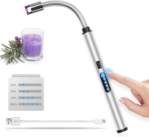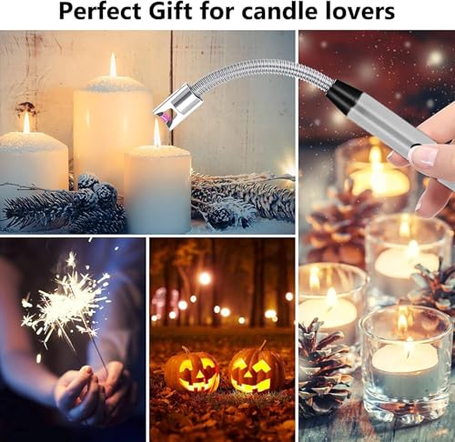 Generic - ولاعة شموع كهربائية قابلة لاعادة الشحن بمنفذ USB مع رقبة مرنة ومؤشر بطارية LED، لون فضي