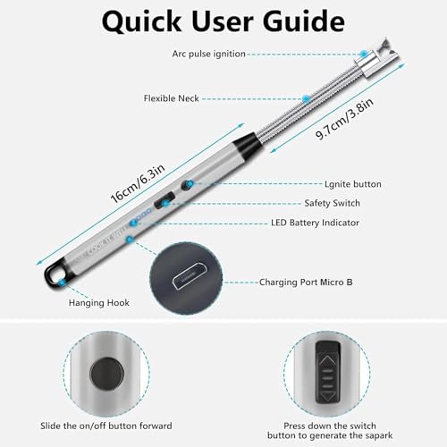 - استخدام متعدد الاستخدامات: رقبة طويلة ومرنة وقوس كهربائي يجعلها مثالية لإضاءة مختلف العناصر بما في ذلك الشموع ومواقد الغاز والمعدات الخارجية
