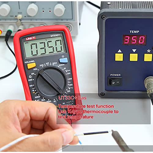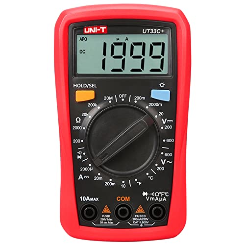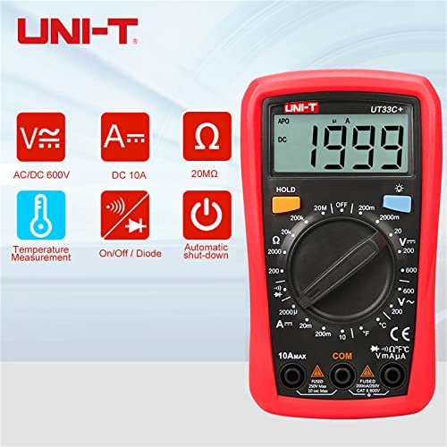 UNI-T - جهاز رقمي متعدد الجهد مع مقاومة للتيار والسعة اوم واختبار ان سي في بشاشة LCD بإضاءة خلفية من يوني- تي، موديل Ut33c+