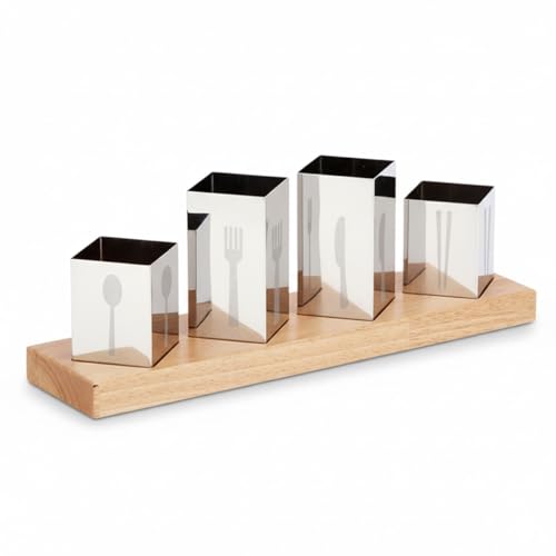 generic - مجموعة حامل ادوات مائدة من الستانلس ستيل مكونة من 4 قطع مع قاعدة من الخيزران لتخزين الملاعق والشوك والسكاكين والمطبخ