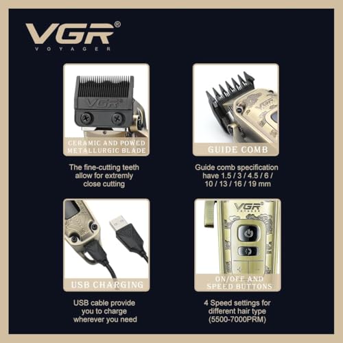 Generic - ماكينة الحلاقة الإحترافيه المعدنيه V-005 بـ8 أمشاط تعمل حتي 250 دقيقة و بشاشة ليد و أزرار زيادة السرعة بـ 4 سرعات متعدده