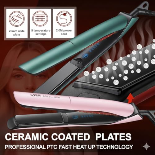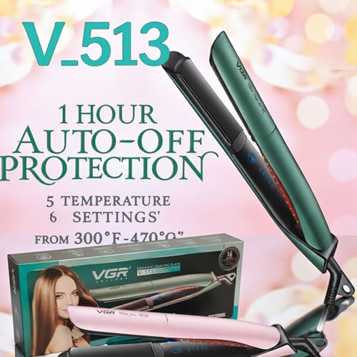 Generic - مكواة فرد شعر بلوحات مطلية بالسيراميك و5 إعدادات لدرجة الحرارة من 149 إلى 243 درجة مئوية وإيقاف تلقائي لمدة ساعة وتسخين سريع V-513