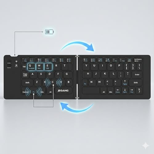 • تصميم قابل للطي ومبتكر: تتميز بآلية طي من المنتصف لتوفير المساحة، وهي النسخة الأصلية V Volt JB-828 Folding Keyboard التي تجمع بين الأداء العالي وسهولة الحمل في الجيب أو الحقيبة.