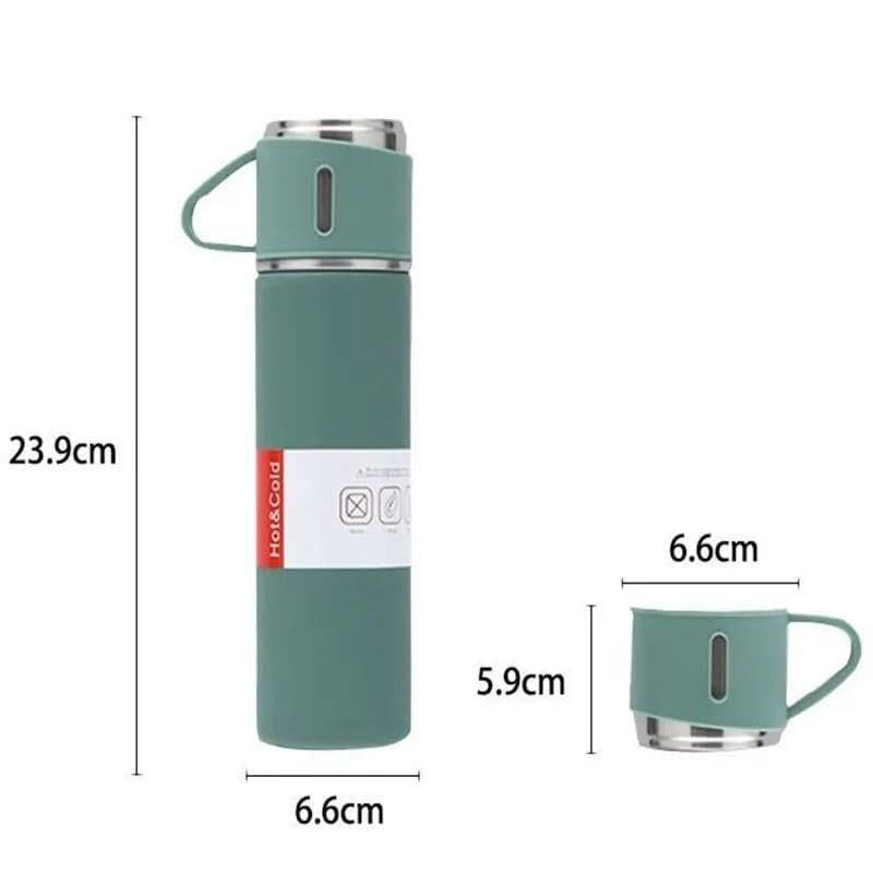 Generic - طقم ترمس مفرغ من الهواء مع كوبين - سعة 500 مل، تصميم انيق للحفاظ على الحرارة والبرودة (اخضر مينت)