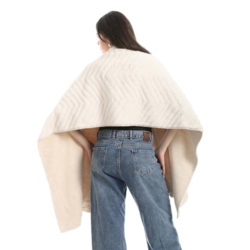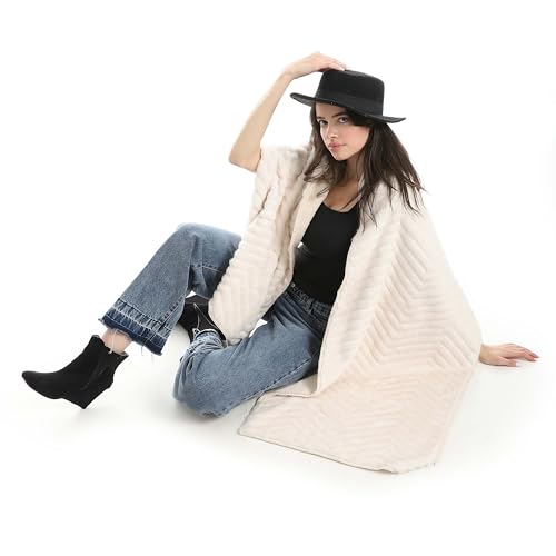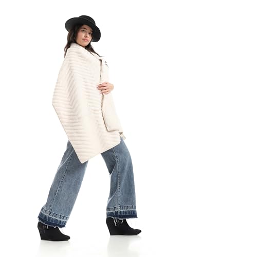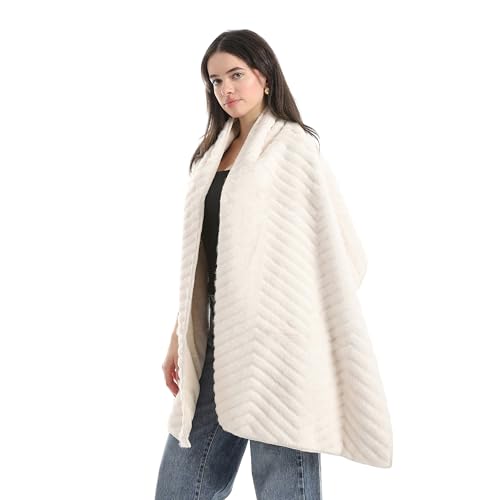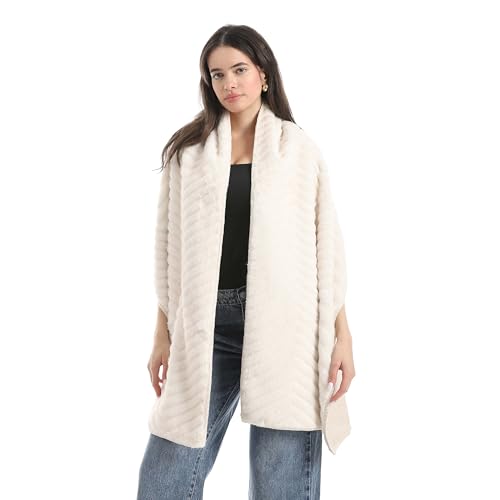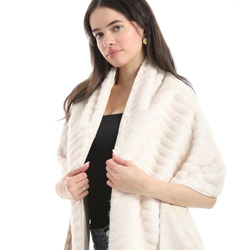 Red Circle - شال كلاسيكي سهل الارتداء من الفرو الصناعي المضلع للنساء من فانيليا