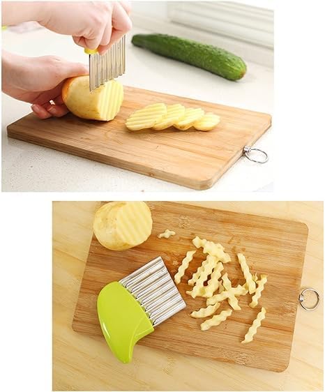 - 1. مصنوعة من مواد عالية الجودة مثل البلاستيك المتين والفولاذ المقاوم للصدأ، مما يجعلها متينة ومقاومة للصدأ. 2. تصميم مريح يسمح بسهولة الاستخدام والقطع الدقيقة للبطاطس أو المخلل. 3. تتميز بسنون مموجة تعطي شكل مميز للبطاطس أو المخلل. 4. سهلة التنظيف وآمنة للاستخدام في غسالة الصحون. 5. مثالية للاستخدام في المطبخ المنزلي أو المطاعم والمقاهي..