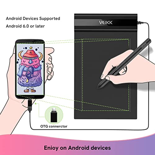 - 【يدعم نظام تشغيل Linux/Android 6.0】: تابلت فييك S640 مع قلم V2 متوافق مع أنظمة تشغيل Linux/Android 6.0 أو أعلى (عدا سامسونج) عبر وصلة OTG المرفقة، كما يعمل مع نظام تشغيل ويندوز 10/8/7 وMac OS 10.12 أو الأحدث، ويمكنك اختيار الطريقة التي تفضلها للعمل للاستمتاع بإبداعاتك في أي وقت وأي مكان.