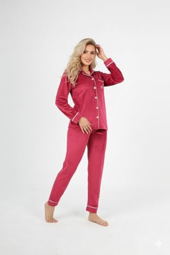 Generic - بيجاما شتوي للنساء والفتيات - خامه فلفيت ناعمه علي اليشره - مناسبة لجميع الأعمار والمقاسات مثاليه للتدفئه من برودة الشتاء تتكون من توب ب 5 زراير وجيب مطرز وكم طويل وبنطلون طويل