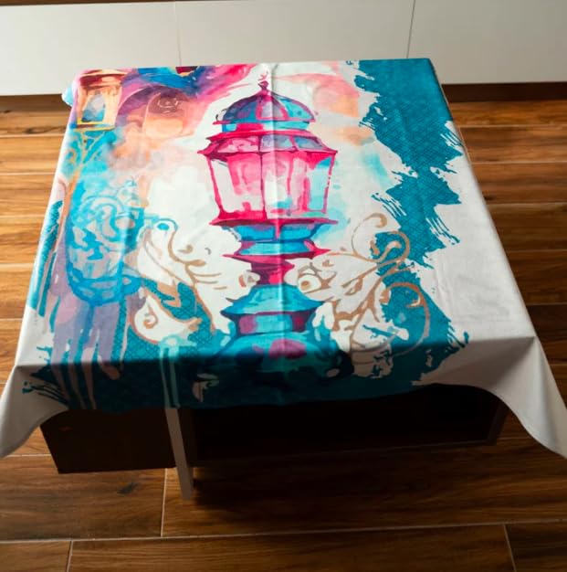 - تصميم مزخرف: يتميز بنمط فني تركواز وزهري مع زخارف فانوس مزخرفة وتفاصيل هندسية تضيف لمسة عصرية وراقية إلى أي مساحة لتناول الطعام