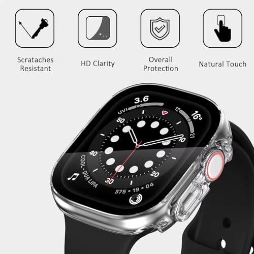 VEMIGON - جراب صلب من البولي كربونات متوافق مع ساعة آبل الترا 2 / الترا 49 ملم مع شاشة حماية من الزجاج المقوى بدرجة صلابة 9، تغطية كاملة، حساس للمس، غطاء واقي فائق النحافة HD ممتص للصدمات من فيميجون - (49 ملم