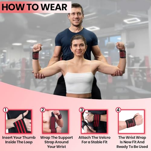 VERDURE - سوار معصم لدعم صالة الالعاب الرياضية ورفع الاثقال للرجال والنساء من فيردور (احمر)، البوليستر