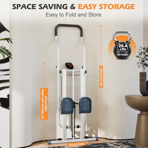 CEIEVER - جهاز تسلق عمودي من سيفير مع مقود قابل للتعديل ودواسة سلم قابل للطي يتحمل وزن 300 باوند مع شاشة LCD، الة تمارين الكارديو للتسلق العمودي للمنزل والمكتب