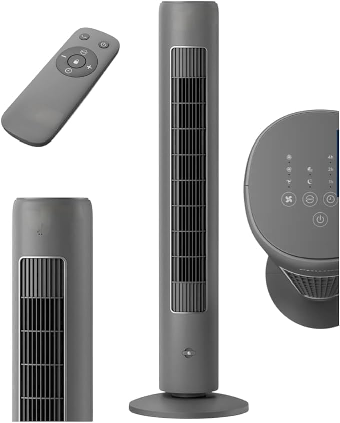 Generic - مروحة برج عمودية، رمادية، مع جهاز تحكم عن بعد، لوحة تحكم لمسية، مؤقت 7 ساعات، 3 سرعات، تأرجح 80 درجة، للمنزل والمكتب