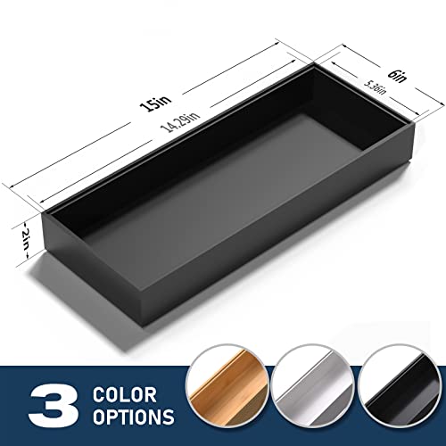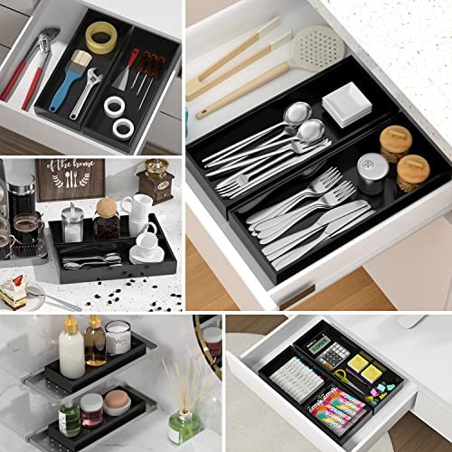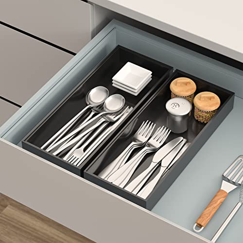 VeyFey - منظم أدراج من الخيزران، منظم أدوات مطبخ قابل للتكديس، صينية أدوات مائدة فضية للدرج من فيفي، أسود، 38 سم × 15 سم × 5 سم، طقم من 2 قطعة