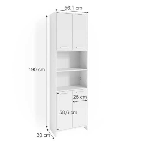 Vicco - خزانة حمام طويلة ماريس من فيكو، خزانة تخزين بيضاء للحمام