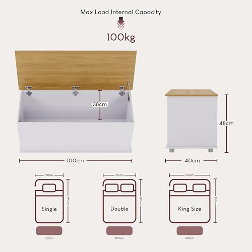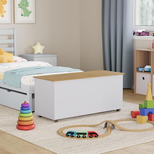 Vida Designs - فيدا ديزاينز صندوق العاب ارلينغتون تخزين خشبي للاطفال مع غطاء واغطية وبطانيات ترتيب ابيض